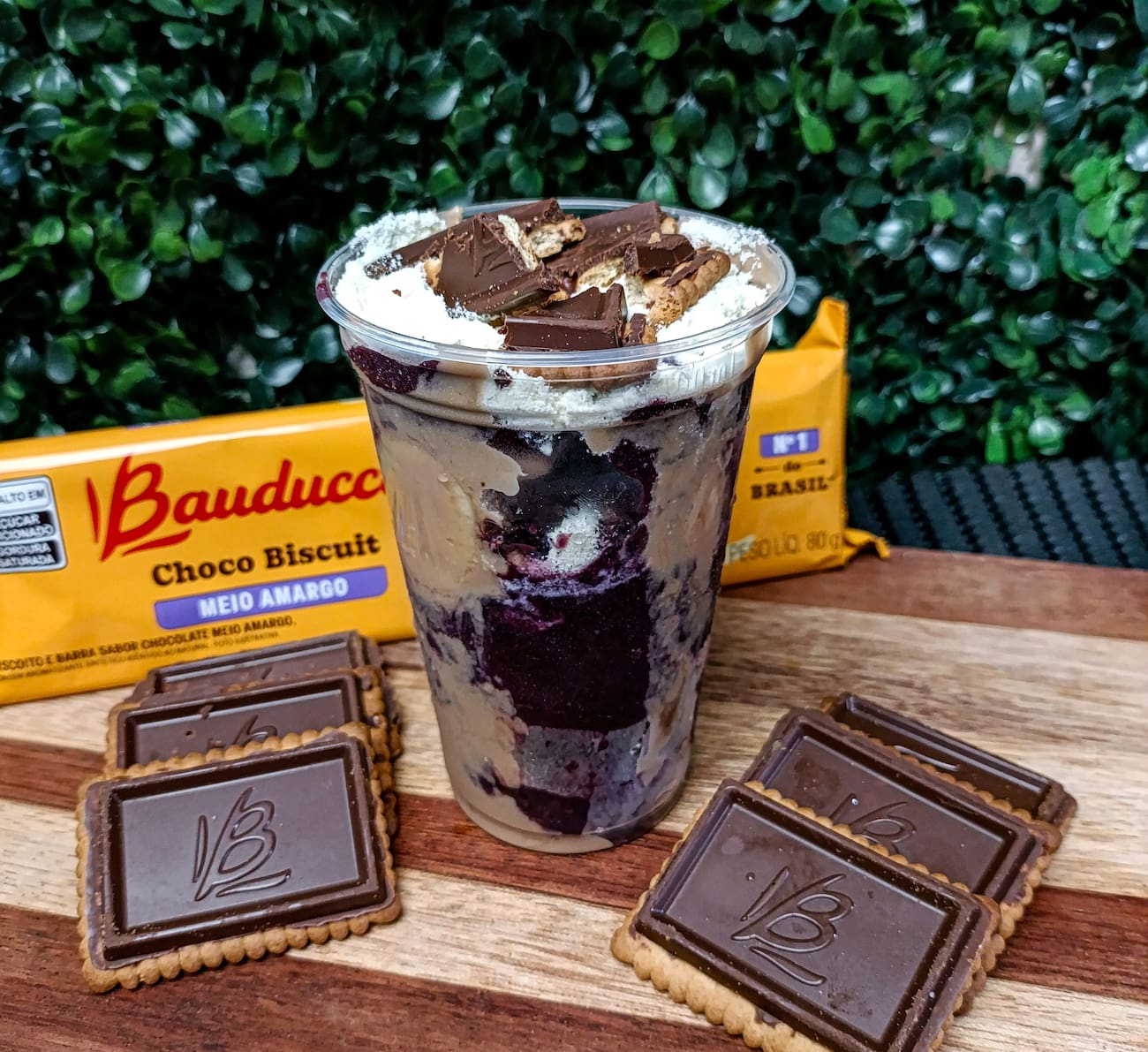 Açaí, Bolacha Bauducco Meio Amargo, Creme Bueno, Leite em Pó e Banana.