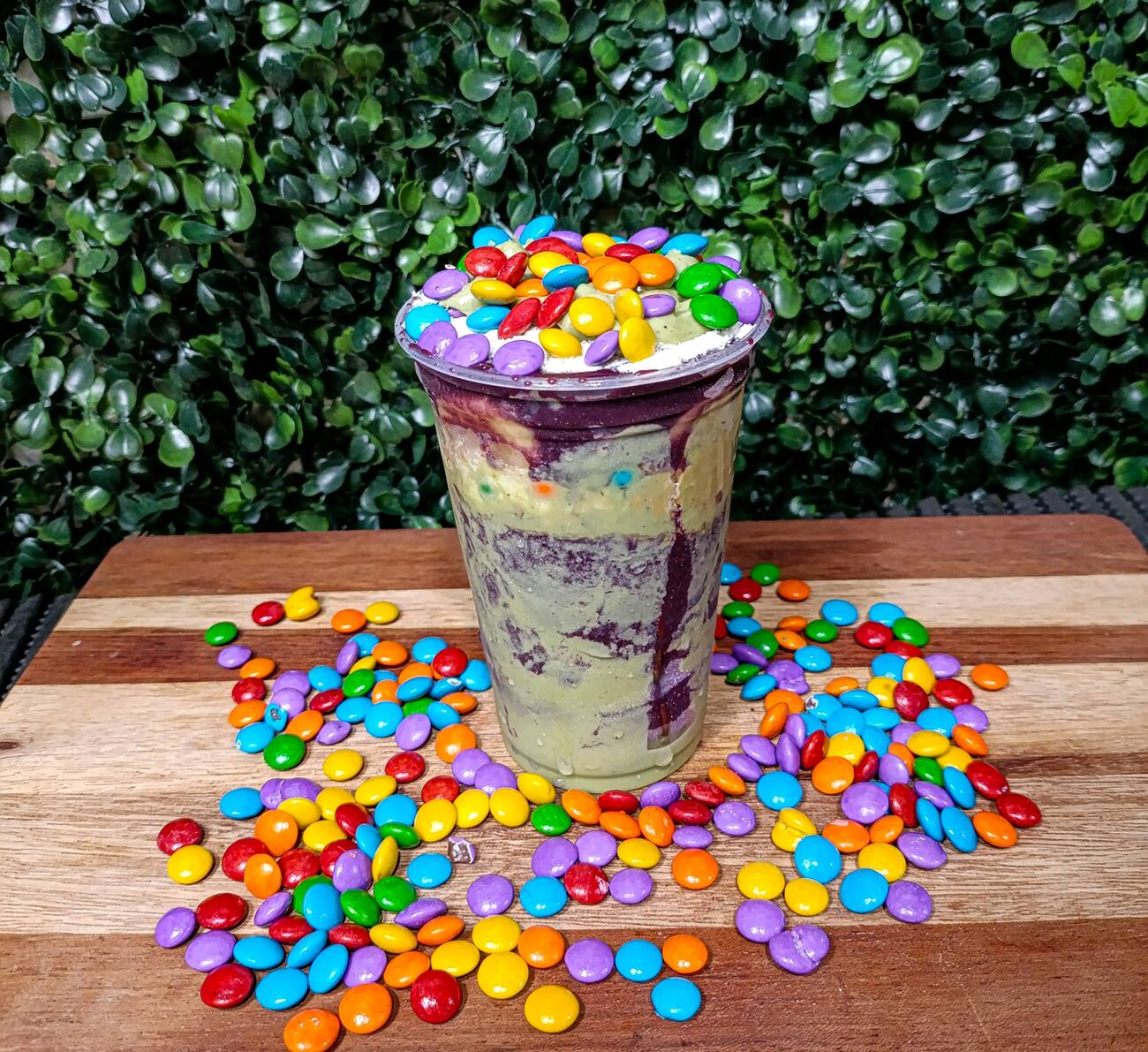 Açaí, Creme de Leite Ninho, Creme de Chocolate ao Leite e Leite em Pó.
